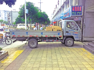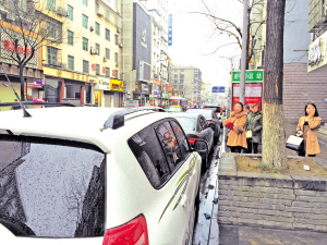 近日,記者在安康城區(qū)觀察發(fā)現(xiàn),大橋路、東大街、江北大道、育才路等路段,機(jī)動(dòng)車(chē)占道現(xiàn)象非常嚴(yán)重,公交車(chē)停靠站的車(chē)位被私家車(chē)隨意占用,導(dǎo)致公交車(chē)無(wú)法進(jìn)站,只能??吭谥鞲傻郎?,人行道盲道也被車(chē)輛堵塞,不僅影響道路交通、市容市貌,還存在安全隱患,給市民出行帶來(lái)很大不便,希望相關(guān)部門(mén)加大整治力度。記者 寇峰 魏濤 攝