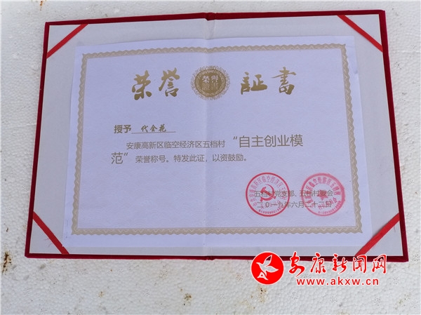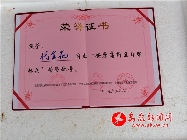 筆者從陳斌口中得知,2019年6月,代全花分別被安康高新區(qū)和五檔村黨支部、村委會(huì)授予“自強(qiáng)標(biāo)兵”和“自主創(chuàng)業(yè)模范”榮譽(yù)稱號(hào),去年一家成功實(shí)現(xiàn)了脫貧。?