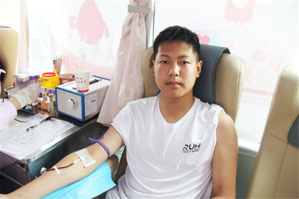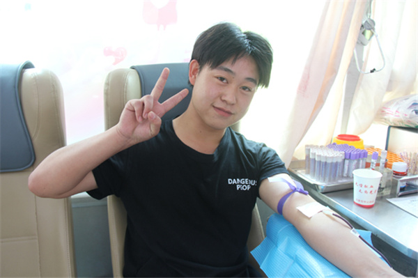 金濤濤是汽修專業(yè)四年級的學(xué)生,當(dāng)天他第一個走上獻(xiàn)血車,已經(jīng)第四次獻(xiàn)血的他顯得非常輕松。他告訴我們,自己初次獻(xiàn)血是十八歲,之后每年時(shí)間到了都主動來獻(xiàn)血,上次他還拉上了爸媽,一家三口一起獻(xiàn)了血。金濤濤覺得獻(xiàn)血特別有意義,對自己的身體有好處,還能救人,每次收到血站發(fā)來的用血短信心里都超級自豪,就想多喊幾個人一起來,他說今后一定爭取把全宿舍的人都動員起來,多獻(xiàn)血多出力多助人!