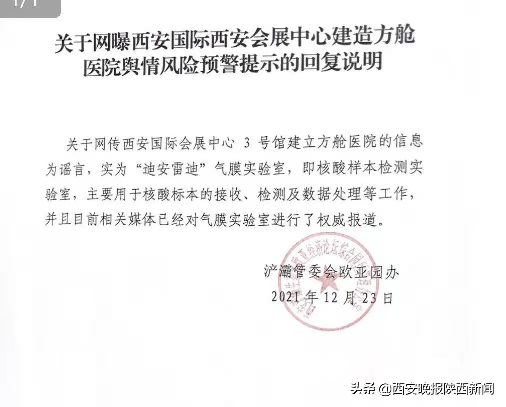 近日,短視頻平臺(tái)有網(wǎng)民發(fā)視頻稱“西安國際會(huì)展中心正在建方艙醫(yī)院”,經(jīng)核實(shí),該信息為謠言,實(shí)為“迪安雷迪”氣膜實(shí)驗(yàn)室,用于核酸檢測工作。
