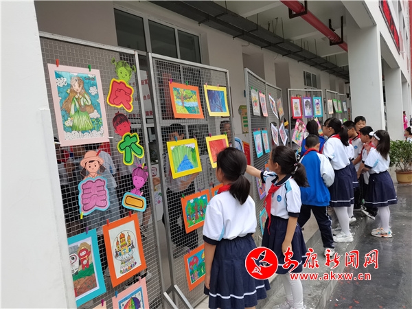 本次展出的作品主要是日常教學(xué)中各領(lǐng)域的美術(shù)作業(yè),內(nèi)容豐富,形式多樣,有深受學(xué)生喜愛的動(dòng)漫作品,也有歌頌幸福生活、暢享美好未來的兒童畫,還有社團(tuán)版畫作品。一幅幅精美的作品畫滿了孩子們童年的歡樂與夢想,表現(xiàn)了孩子積極向上、陽光自信的審美品質(zhì),也表達(dá)了孩子對黨、對祖國的熱愛和祝福!