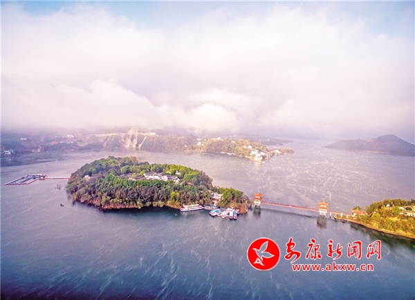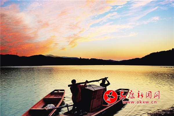 初冬的清晨,瀛湖風(fēng)姿綽約、曼妙無(wú)比。起初湖水像是受熱不均的沸水,這里一點(diǎn),那里一塊冒著熱騰騰的青煙,如絲如縷,在水面上輕盈地飄動(dòng)、游離、撕扯,如慵懶自在的白云,把天空、湖水襯托得更藍(lán)。漸漸地,煙嵐越來(lái)越濃,越來(lái)越多,像化不開的乳汁,最后整個(gè)湖面煙波浩渺,小船和遠(yuǎn)山若隱若現(xiàn),似人間童話仙境。這樣的山圍繞著這樣的水,這樣的水倒映著這樣的山,再加上湖中帆影點(diǎn)點(diǎn),白鷺行行,小島林立,魚群結(jié)對(duì),有種人在畫中游的感覺(jué)。深冬,總會(huì)落一兩場(chǎng)雪。那雪,極富層次。山下,素雪輕薄覆蓋;山上銀裝素裹,玉潔冰清。湖水則咕嘟咕嘟冒著熱氣,白綠相配,分外醒目,似丹青妙手繪制的山水畫,又似巧手繡娘精繡的刺繡,美輪美奐,惹人愛(ài)憐。