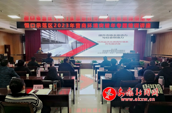 本網(wǎng)訊(通訊員 楊亮 楊繼焮)2月3日,恒口示范區(qū)經(jīng)發(fā)局舉辦了2023年?duì)I商環(huán)境突破年專題培訓(xùn)講座,旨在全面落實(shí)省委、省政府“營(yíng)商環(huán)境突破年”工作部署,進(jìn)一步優(yōu)化提升恒口營(yíng)商環(huán)境工作。邀請(qǐng)北京市煒衡(西安)律師事務(wù)所主任王小濤主講,全區(qū)各部門、稅務(wù)、水電氣、通信運(yùn)營(yíng)商等60余人參加。