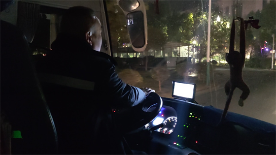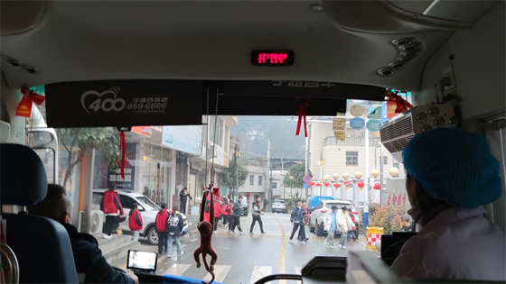 環(huán)顧車內(nèi),面包、牛奶、熱水……這里更像是他們的第二個家。我和司機師傅開玩笑說:“今天出發(fā)夠早的啊,太陽都還沒上班呢。”司機輕描淡寫的說:“這算晚的了,以前去更遠的鎮(zhèn)上,四五點就要出發(fā)。”他雙眼筆直的看向前方,仿佛看見了比路更多的東西,而在我眼里,那不過是車燈照不到盡頭的一片迷霧。