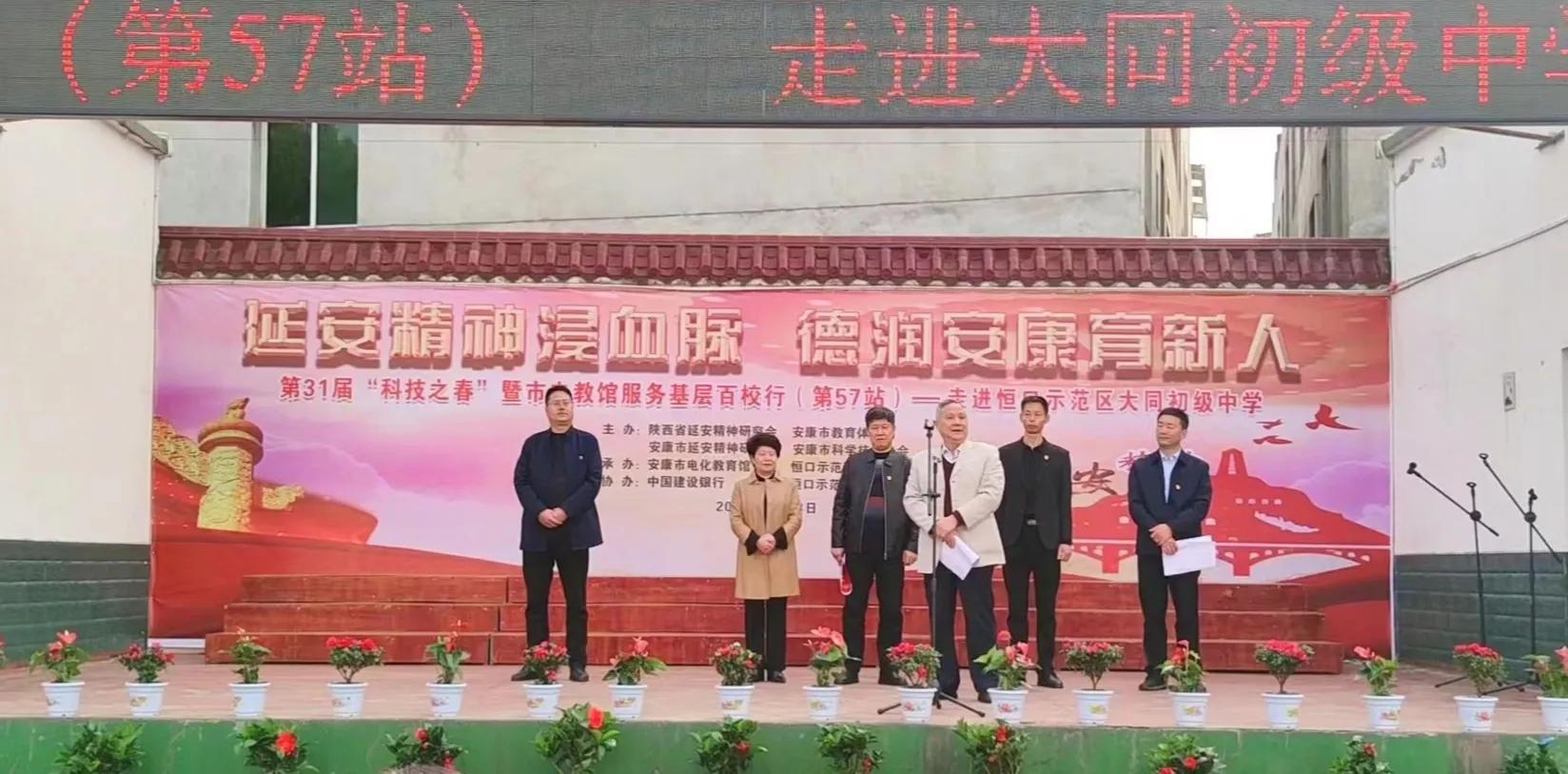 三月,春光明媚,草長鶯飛。3月28日,由安康市教體局和省、市延安精神研究會主辦,安康市電教館和恒口示范區(qū)教體局承辦的“延安精神浸血脈,德潤安康育新人”的大型宣講活動走進恒口示范區(qū)大同初中。至此,一場即將在全市巡回開展的紅色教育的序幕拉開。