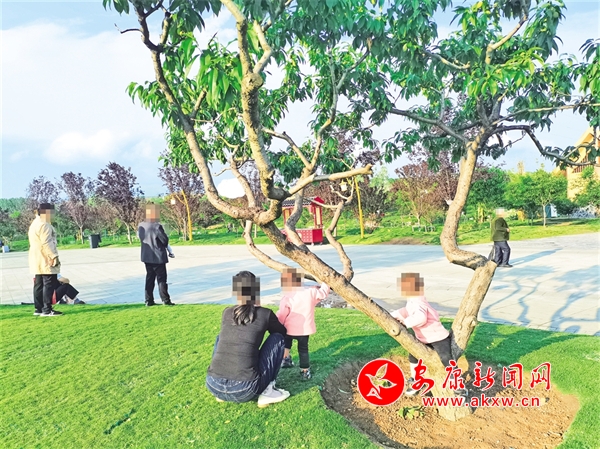 “五一”期間,在高新區(qū)桃花源景區(qū),個(gè)別游客帶領(lǐng)小孩未按照相關(guān)規(guī)定文明規(guī)范游玩,小孩攀爬樹(shù)木,很是危險(xiǎn)。(陳榮斌 攝)