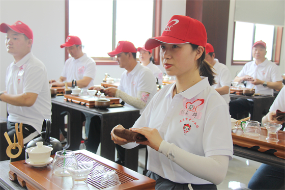 在隨后的炒茶和茶藝課上,大家更是興趣濃厚,在老師們耐心細(xì)致地講解引導(dǎo)下,大家一步一步動(dòng)手親為,在舒緩的音樂(lè)聲和高雅的氛圍中感受著茶文化的熏陶。