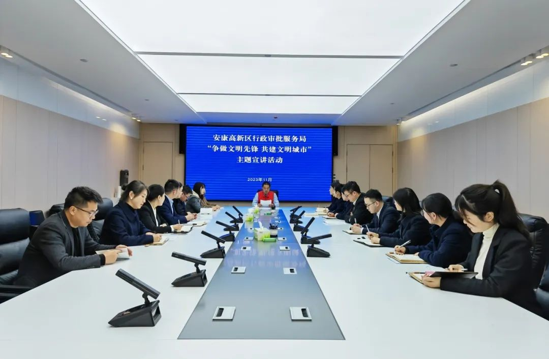 11月17日下午,安康高新區(qū)行政審批服務(wù)局舉行“我是崇德向上安康人 我為文明安康做代言”宣講活動(dòng),活動(dòng)圍繞“爭(zhēng)做文明有禮人 共創(chuàng)全國(guó)文明城”主題開展了敬業(yè)奉獻(xiàn)類代言人宣講和展示。
