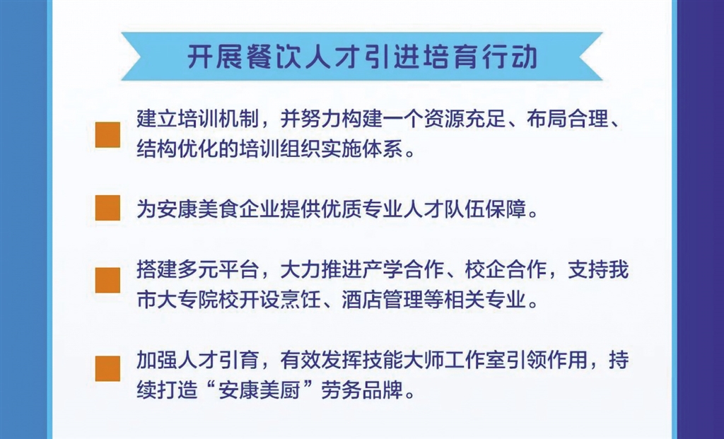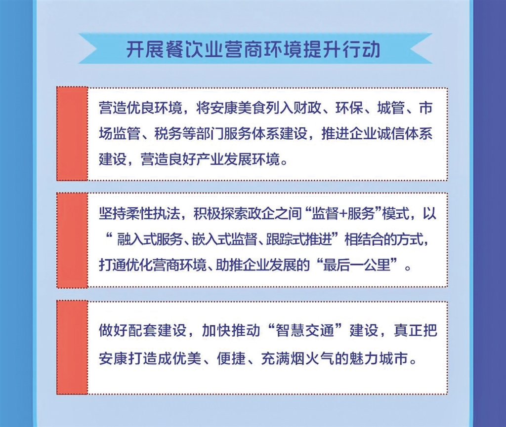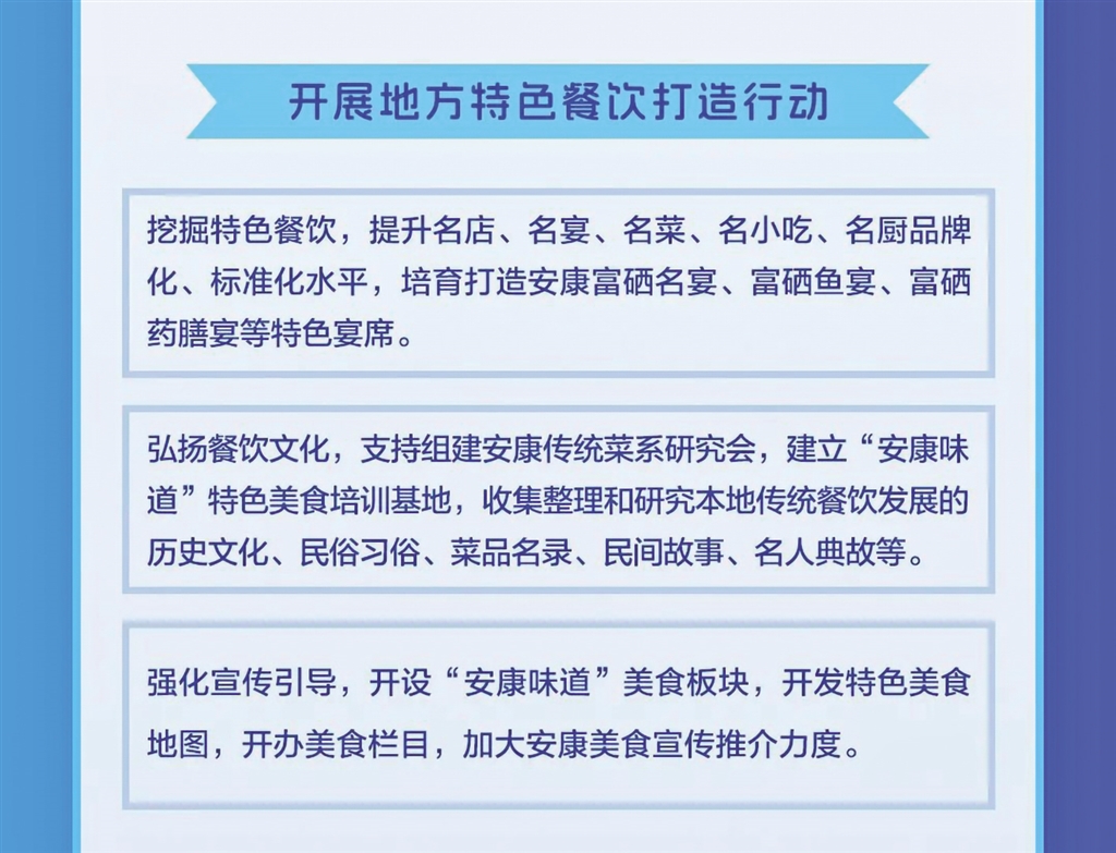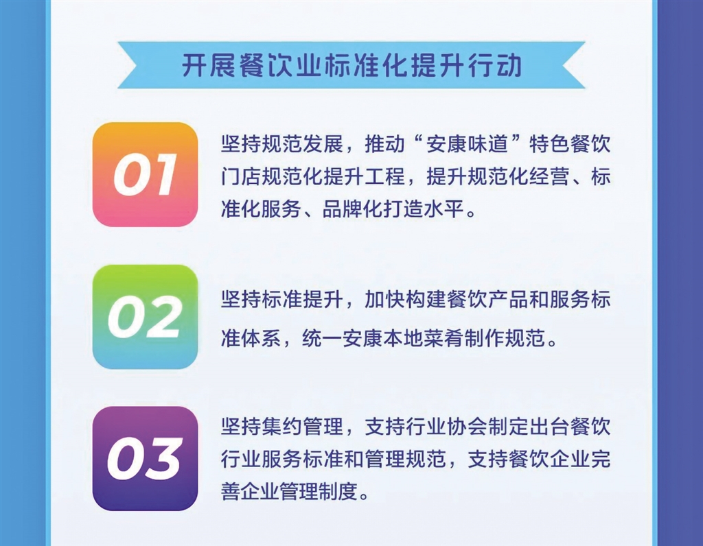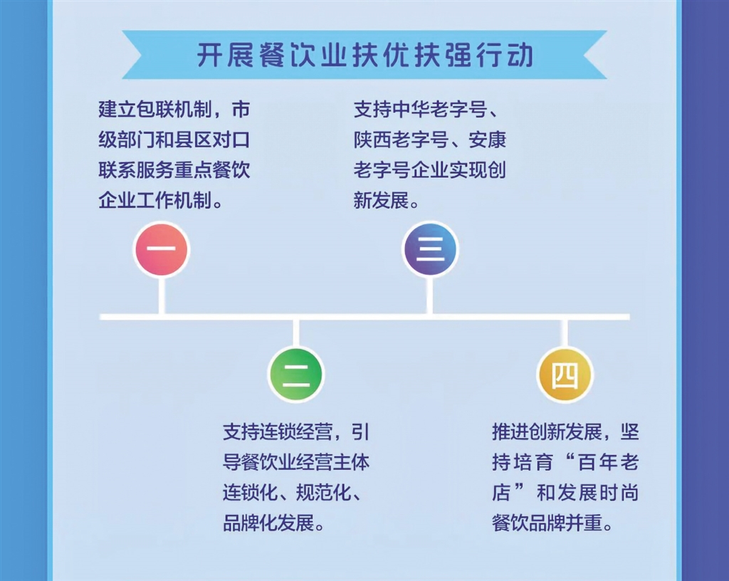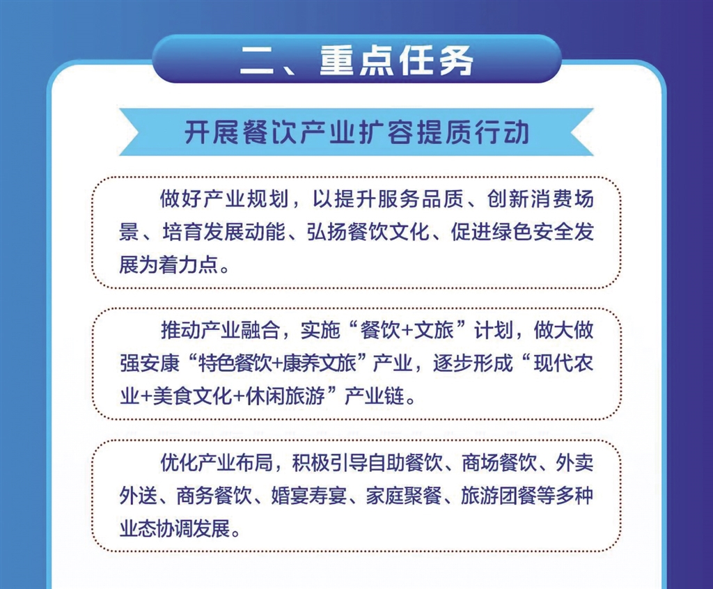 日前,安康市商務(wù)局等11部門聯(lián)合發(fā)布《關(guān)于進(jìn)一步推進(jìn)全市餐飲業(yè)高質(zhì)量發(fā)展的實(shí)施意見(jiàn)》,本期帶您一圖讀懂其重點(diǎn)任務(wù)。