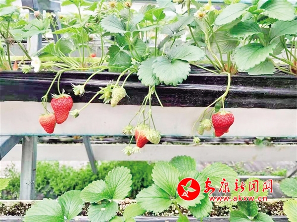 “‘高架草莓’不僅節(jié)約人力,能讓大家冬天也能吃到鮮甜可口的草莓,也不用擔心降溫、大雪等天氣影響。懸空種植還方便工人以及游客進行采摘,許多周邊群眾慕名而來,體驗‘開心農場’。”園區(qū)技術員曹峰說。