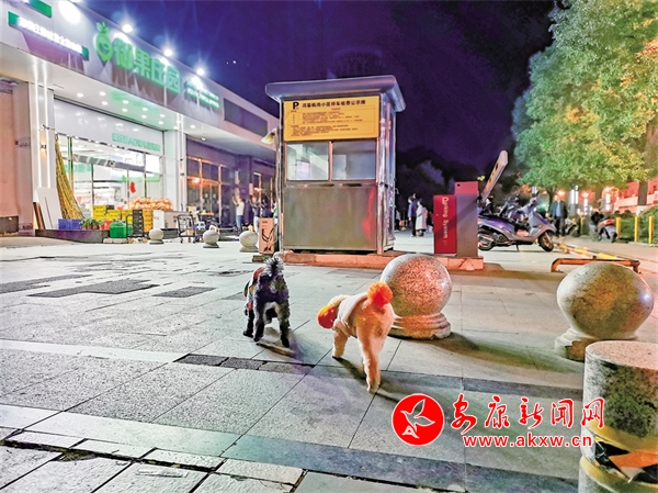 3月12日,在安康育才西路,有市民遛狗不牽繩。 記者 潘潤生 攝