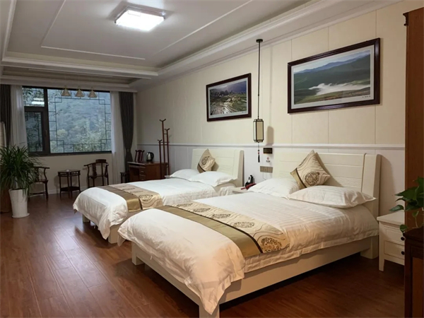 銘揚(yáng)酒店坐落于廟山寨景區(qū)內(nèi),依托景區(qū)內(nèi)的自然資源,建成集觀光旅游、娛樂(lè)健身于一體的康養(yǎng)民宿綜合體,可提供床位25個(gè)。