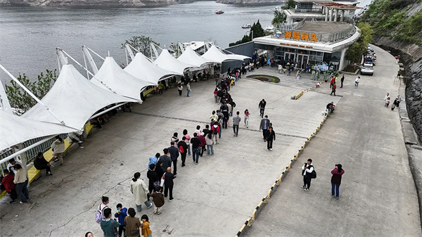 清晨7時30分,即已有游客趕到景區(qū)游客中心,8時10分,第一趟班船已然發(fā)船。上午9時,瀛湖北門口的停車場,500余停車位就已停滿車輛。車輛開始向景區(qū)南大門——翠屏島方向分流。
