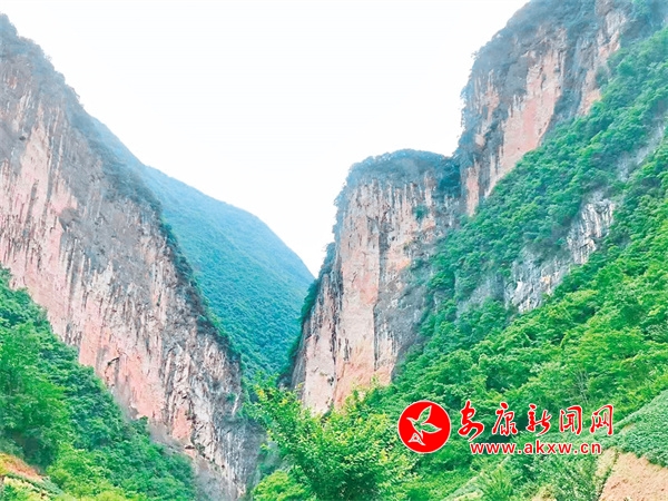 白巖坡就是大巴山的杰作,地質(zhì)斷層形成的兩座山峰如同兩扇大門,擋在通往巴山的路途上,展示著什么是“一夫當(dāng)關(guān),萬夫莫開”。歲月的風(fēng)霜雪雨、日曬夜露將山體侵染成灰白相間的印跡,像極了牛角上的紋路,生命力極強(qiáng)的花草樹木在懸崖峭壁上瘋狂生長(zhǎng),一條不知趣的小溪硬是從兩山夾峙中拼命擠過,切出一道深澗,絮絮叨叨著“水可穿石”。從巖石里、溶洞中、草木根沁出的泉水,爭(zhēng)先恐后地竄進(jìn)小溪,歡歌嬉戲。停車駐足,一股清新空氣不打招呼地沁入心脾,全身舒坦。抬頭仰望,一線天里寫滿花草樹木、藍(lán)天白云、風(fēng)花雪月,讓人心曠神怡,仿佛到了世外桃源。