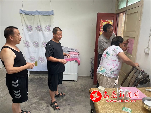 “奶奶,這是咱屋的防汛明白卡,我把我的電話給您存到手機里了,過段時間要是雨下大了您就給我打電話!”