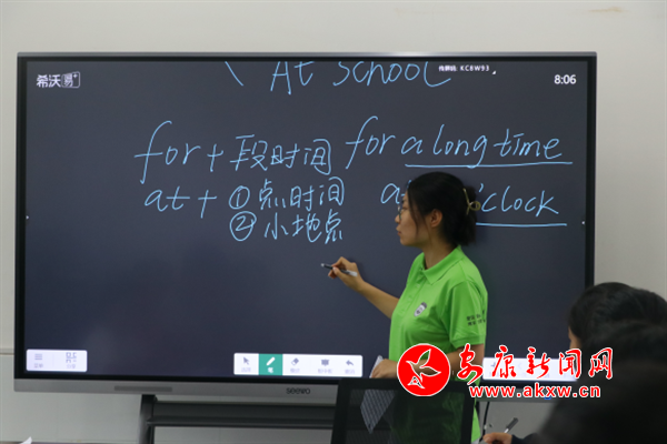 團隊成員吳靜精心為七年級準(zhǔn)備了英語閱讀課,通過“begoodat/dowellin”進行趣味接龍,了解學(xué)生的興趣愛好的同時,仔細(xì)糾正學(xué)生錯誤發(fā)音,架起溝通的橋梁。她了解到學(xué)生缺乏英語學(xué)習(xí)方法的困境后,運用學(xué)生喜聞樂見的方法講解具體的知識點,如用四大名著之一《水滸傳》里面的人物“宋江(及時雨)”來幫助學(xué)生聯(lián)想記憶,區(qū)分“intime(及時)”與“ontime”兩個易混淆短語。同時滲透了“確定關(guān)鍵詞、原文定位、選項比對”閱讀做題方法及閱讀選項判斷技巧。英語課堂融入了文化元素,激發(fā)了學(xué)生的英語學(xué)習(xí)興趣,反響熱烈。