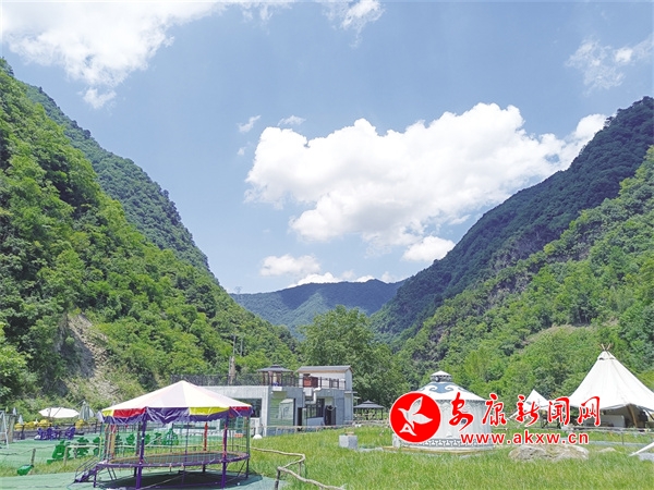 立秋這天,為了避暑,我和友人結伴,頂著38度的高溫從安康城區(qū)出發(fā),經平鎮(zhèn)高速公路,一個半小時到達干洲河上游的五眼泉露營基地,剛好正午12點半,而這里的室外溫度只有22度。打開車門,山風一吹,一身暑氣頓時退去,隨之而來的是山風中的樹木清香、山花濃香,以及河風吹來的溫潤之感。