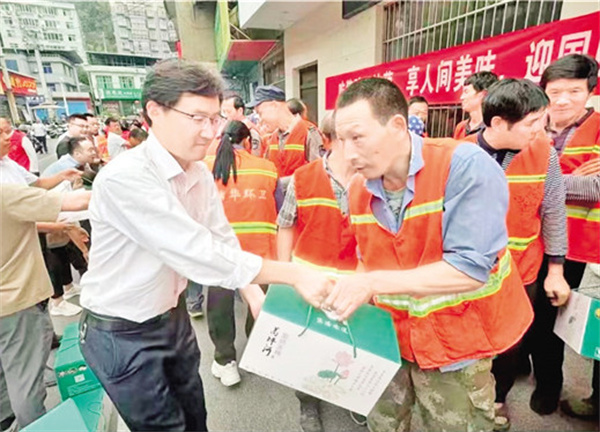 在國慶佳節(jié)前夕,蒿坪鎮(zhèn)黨委政府精心組織了一場別開生面的“吃豬蹄子燉藕,享人間美味,迎國慶佳節(jié),向環(huán)保衛(wèi)士致敬”主題慰問活動。 劉姝含 攝