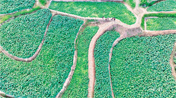 蒿坪鎮(zhèn)改革村“荷”你“藕”遇農文旅園區(qū)夏日荷葉,一片宜人景色。陳梅 攝
