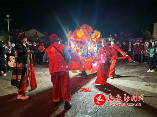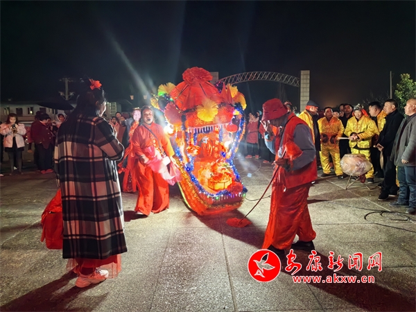 在位于漢陰縣平梁鎮(zhèn)的興隆佳苑社區(qū),春節(jié)期間,小區(qū)里處處洋溢著節(jié)日氛圍。夜幕降臨,社區(qū)廣場響起陣陣鑼鼓聲,?;ù硌菡介_始。只見表演者雙手提船、配合默契,船體隨著“波浪”旋轉(zhuǎn)、顛簸,身穿喜慶艷麗的服裝、頭戴五彩頭飾的表演人員個個精神抖擻,一邊前行,一邊唱著漢陰本地的花鼓戲,祈求來年風(fēng)調(diào)雨順、福壽安康。翻飛的彩扇、華麗的彩船,精心編排、詼諧幽默的表演,為社區(qū)群眾呈現(xiàn)了一場精彩的視覺盛宴。