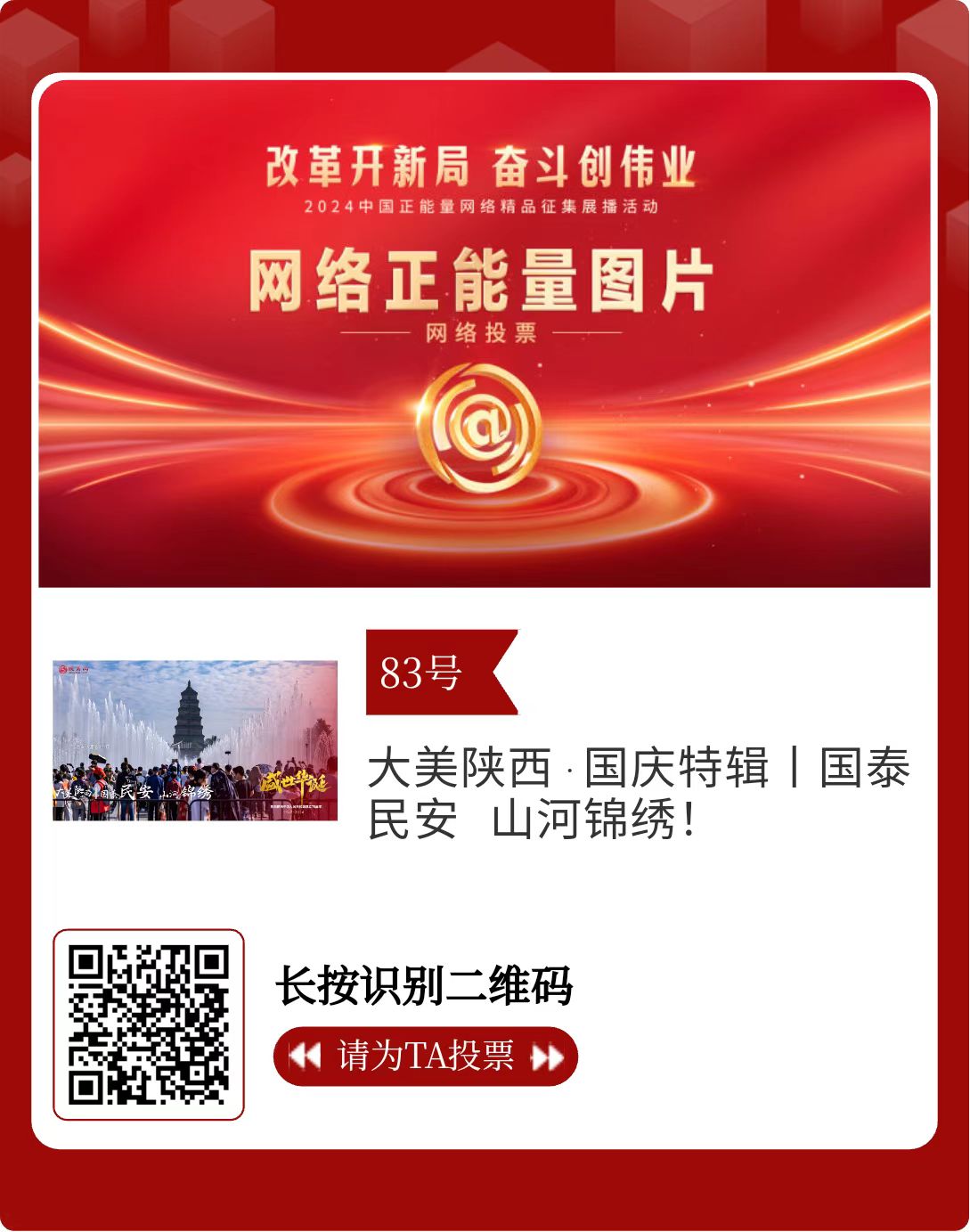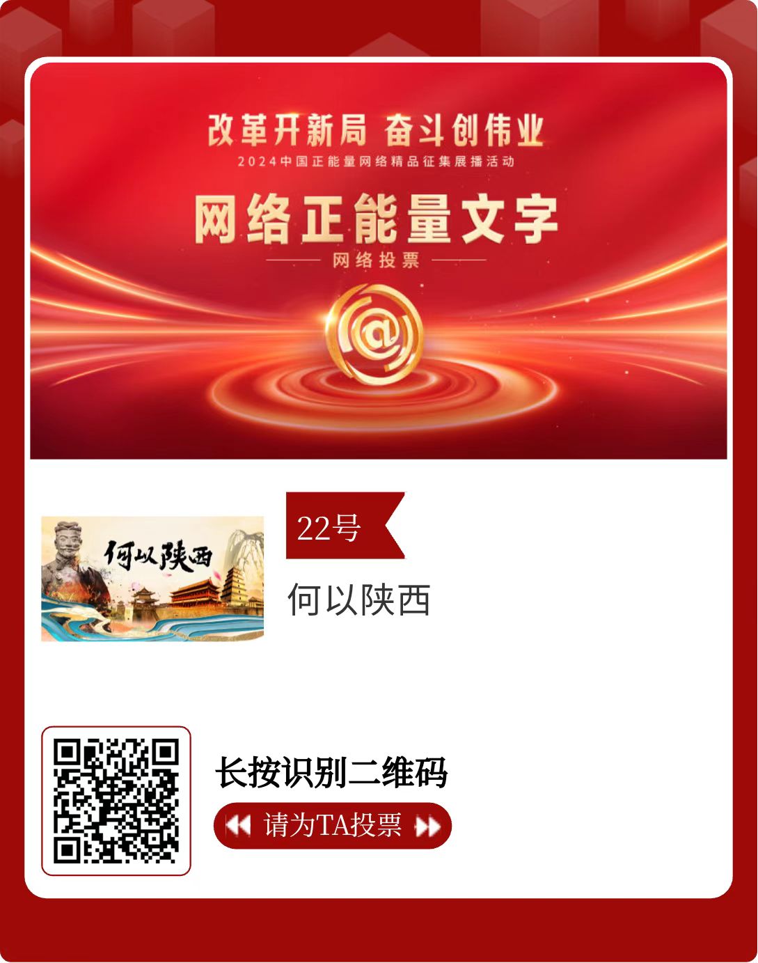陜西省32件作品進入投票環(huán)節(jié),投票時間為2月15日至2月21日,投票結(jié)果將作為中國正能量網(wǎng)絡(luò)精品遴選的重要參考。中國正能量網(wǎng)絡(luò)精品,期待每一個充滿正能量的你投出點贊一票。