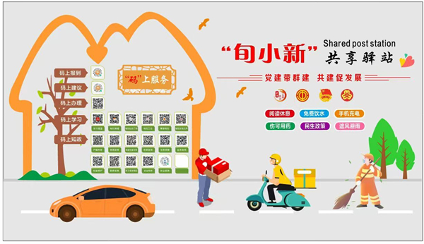 “旬小新”共享驛站按照“黨建帶群建 共建促發(fā)展”思路,秉持“需求前置、服務(wù)賦能”理念,通過整合行業(yè)部門、企業(yè)、社會三方資源,著力構(gòu)建“15分鐘暖新服務(wù)生態(tài)圈”,為快遞員、外賣騎手等新就業(yè)群體提供閱讀休息、免費飲水、手機充電、應(yīng)急藥箱等18項基礎(chǔ)服務(wù)設(shè)施。