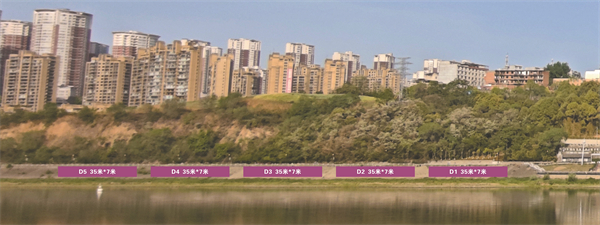 江北廣告位紫色區(qū)域:D1—D5,規(guī)格35米*7米,費(fèi)用6萬。
