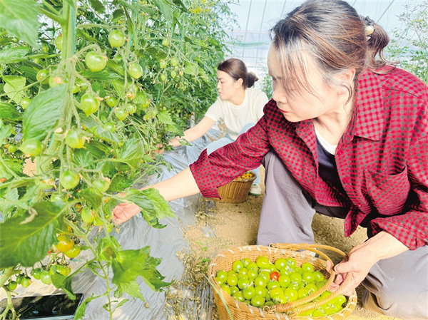 在分揀包裝區(qū),果農(nóng)們將圣女果按顏色、甜度分級(jí)包裝?!扒嗌鸲雀?,適合鮮食;紅色果酸甜適中,主要供應(yīng)餐飲店?!贝迕駝⒋蠼憬榻B,自己以前在外地務(wù)工,現(xiàn)在在家門口就能上班,每個(gè)月能掙3000多元。在歡樂(lè)采摘區(qū),游客們一邊采摘一邊拍照,發(fā)微信朋友圈展示觀光采摘的樂(lè)趣。