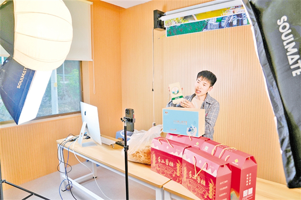 站在石門鎮(zhèn)電商直播基地內(nèi),燈光將王幫樂(lè)的影子拉得老長(zhǎng)。他正調(diào)試著新入手的直播設(shè)備,準(zhǔn)備把即將啟用的電商中心搬進(jìn)鏡頭。發(fā)貨的提示音在這時(shí)響起,恰似這個(gè)年輕“新農(nóng)人”正在書(shū)寫(xiě)的電商助農(nóng)新篇章。