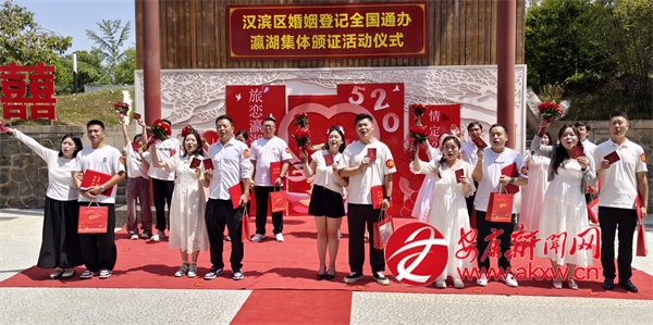 在做好窗口登記的同時(shí),漢濱區(qū)婚姻登記服務(wù)中心拓展服務(wù)形式,在瀛湖金螺島戶外頒證基地,開展“5·20新‘證’啟航,幸?!ㄞk’未來”集體頒證活動(dòng),邀請(qǐng)10對(duì)新人開展集體戶外頒證,在眾人的見證下宣讀愛情誓言,接受大家的祝福。