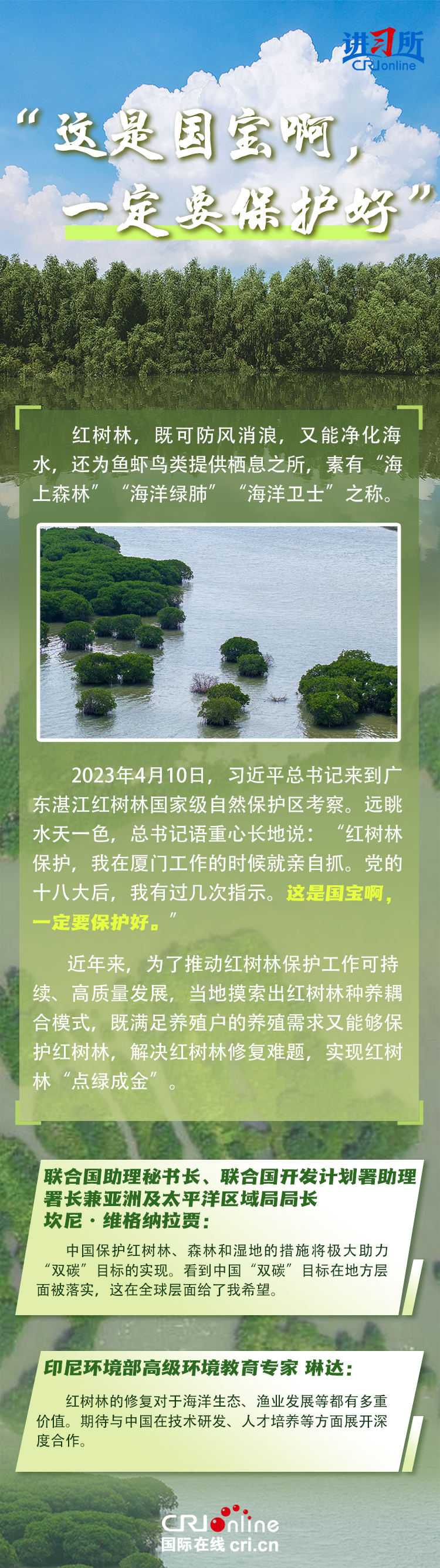 新時代以來,在習(xí)近平生態(tài)文明思想的科學(xué)指引下,“兩山”理念已深入人心,從“點(diǎn)綠成金”的紅樹林到一座座“花果山”,再到走向世界的長汀經(jīng)驗(yàn)……美麗中國建設(shè)邁出重大步伐,生態(tài)環(huán)境保護(hù)發(fā)生歷史性變化。國際社會認(rèn)為,中國取得廣泛的綠色發(fā)展成就,從根本上源于習(xí)近平生態(tài)文明思想,特別是“兩山”理念的指引。在通過綠色轉(zhuǎn)型推動經(jīng)濟(jì)可持續(xù)發(fā)展方面,中國正成為全球可持續(xù)發(fā)展的典范。