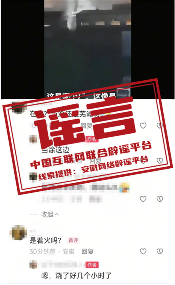 真相:近日,一網民在短視頻平臺發(fā)布視頻配文“這是哪個廠,好像是著火啦”,并在評論區(qū)稱“工廠在當涂、燒了好幾個小時”等。經安徽省馬鞍山市當涂經濟開發(fā)區(qū)應急管理局和消防救援中心核實,當涂經濟開發(fā)區(qū)境內沒有發(fā)生火情火災,該視頻為虛假信息。(來源:“安徽省互聯網違法和不良信息舉報”微信公眾號)