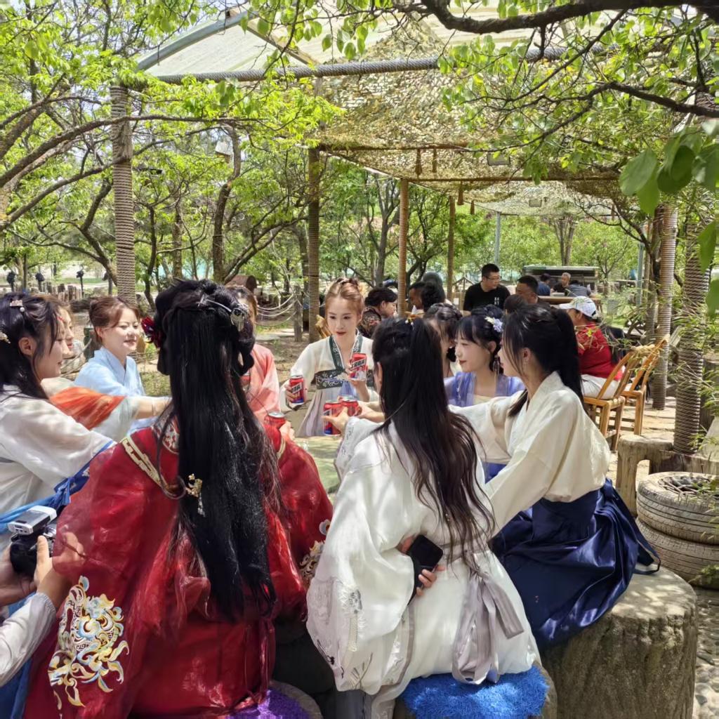 游客在巧媳婦莊園涼亭內聊天、聚餐。(受訪者供圖)