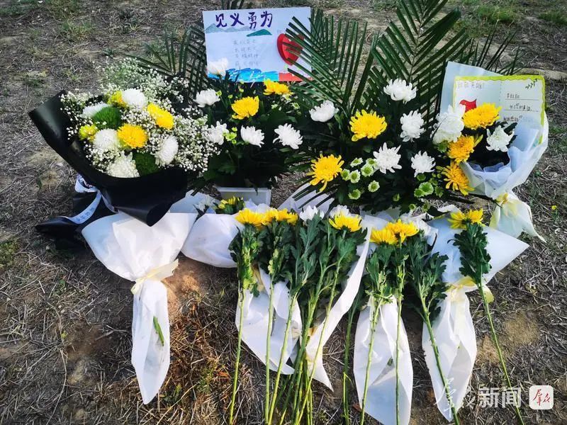 在李靜毅下水救人的河灘附近,自發(fā)前往悼念的群眾擺放鮮花、紀(jì)念卡,向這位救人英雄寄托哀思、獻(xiàn)上敬意。