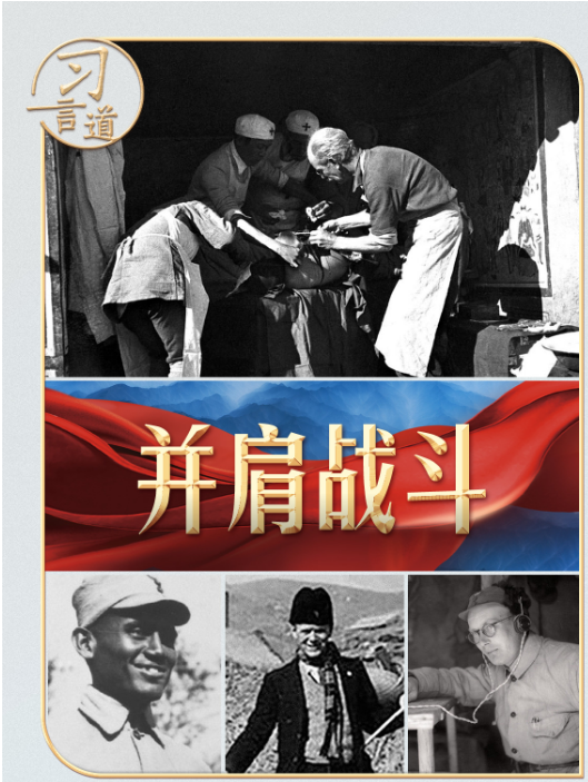 印度醫(yī)生柯棣華、法國醫(yī)生貝熙葉、德國人約翰·拉貝、丹麥人辛德貝格、英國人林邁可、國際主義戰(zhàn)士漢斯·希伯、蘇聯(lián)飛行大隊長庫里申科、美國“飛虎隊”......他們的事跡,習近平總書記曾多次動情講述??倳涍€在國內(nèi)外重要場合為曾幫助和支持中國抗戰(zhàn)的國際友人頒獎,向他們致敬。