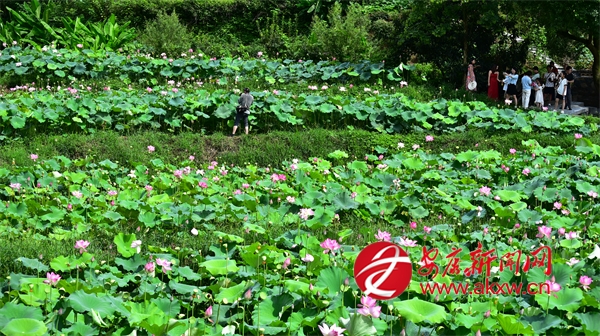 連日來(lái),平利縣廣佛鎮(zhèn)余家灣百畝荷塘花開爭(zhēng)艷,引得游人或駐足細(xì)品荷韻,或輕倚棧道拍攝留影。王韜 攝?