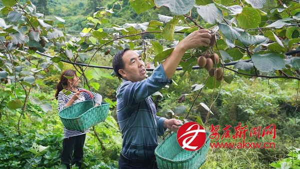 在觀音河鎮(zhèn)中坪村種植大戶王詩金的獼猴桃園里,連綿的藤架上果實累累,黃褐色的獼猴桃成串懸掛,王詩金和家人一起穿梭于藤蔓之間,熟練地采摘、搬運(yùn),臉上寫滿了喜悅。