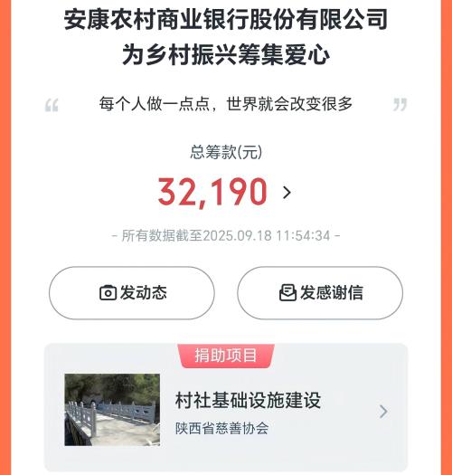凝聚慈善力量,助推共同富裕?!耙蝗站琛被顒釉陉兾鬓r(nóng)信安康農(nóng)商銀行已持續(xù)開展7年,該項活動已成為陜西農(nóng)信安康農(nóng)商銀行踐行社會責任的一項實際行動,更是“大愛農(nóng)信”企業(yè)文化的有效載體。
