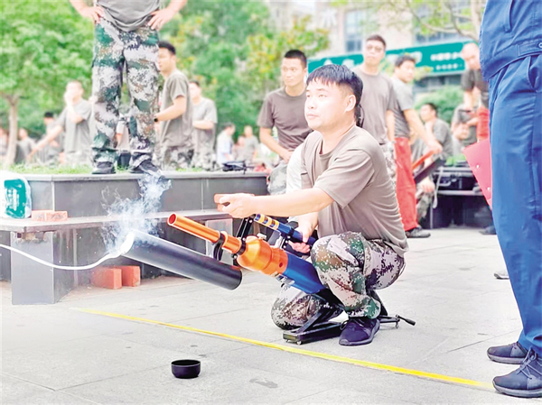 邱凱介紹,該鎮(zhèn)應急救援隊由鎮(zhèn)級救援隊、15個村級救援分隊和水上應急救援隊組成,共17支隊伍278人?!盀榱诉@次比武,后柳鎮(zhèn)收到通知后就積極籌備。兩個月里,參賽隊員除了到縣消防救援大隊接受專業(yè)培訓外,平時也堅持每周訓練。”邱凱指著場邊的灑水車說,“這輛灑水車是鎮(zhèn)上自己改造的,不僅成本低,也更適合鎮(zhèn)情實際,五層樓以上的救援也能覆蓋。?