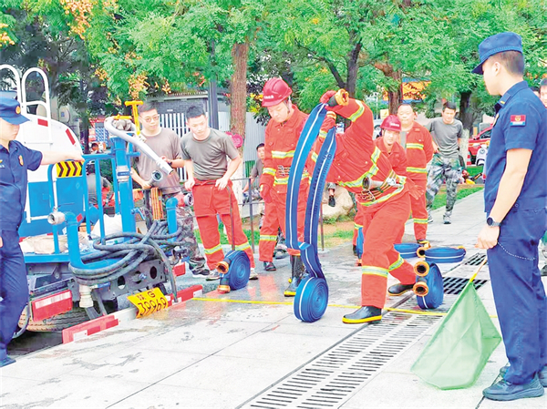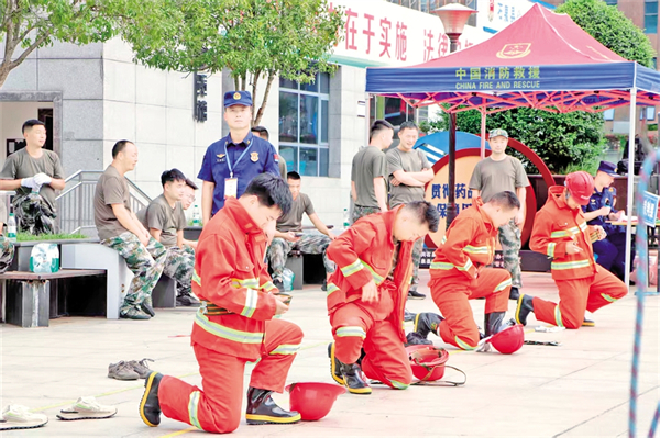 “開始!”裁判一聲令下,參賽隊員們如離弦之箭,迅速在原地依次穿戴全套防護裝備。