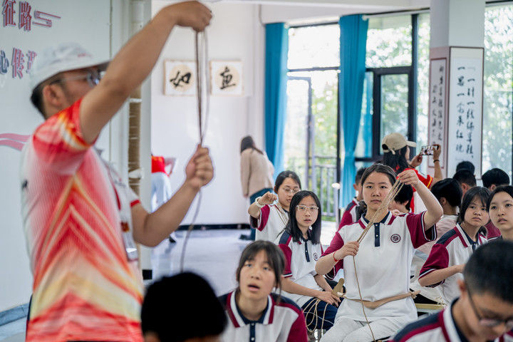 ? 2025年5月12日,云南省昭通市威信縣第一中學(xué)學(xué)生在大屏上紅色研學(xué)實(shí)踐基地體驗(yàn)編織草鞋。200余名學(xué)生在紅色研學(xué)實(shí)踐基地親手編織草鞋、制作蠟染,并參觀了扎西會(huì)議舊址、紅軍長(zhǎng)征過云南情景體驗(yàn)館,在實(shí)踐互動(dòng)中重溫紅色革命歷史。威信縣立足紅色文化資源優(yōu)勢(shì),先后建成扎西會(huì)議紀(jì)念館、紅軍長(zhǎng)征標(biāo)語(yǔ)館等紅色文化展館,以舊址遺跡為“教室”,以文物史料為“教材”,設(shè)計(jì)開發(fā)多門精品研學(xué)課程和線路,在深入開展紅色研學(xué)系列活動(dòng)中傳承紅色基因。