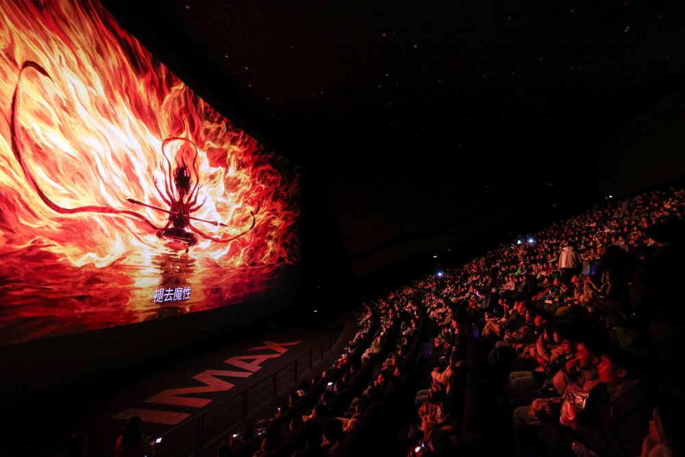 2025年2月25日,觀眾在貴陽越界影城IMAX影廳內(nèi)觀看電影《哪吒之魔童鬧?!?。動(dòng)畫電影《哪吒之魔童鬧?!纷?月29日上映后票房一路高歌猛進(jìn),僅用8天便登頂中國影史票房榜,隨后成為全球單一市場(chǎng)票房冠軍、全球動(dòng)畫電影票房冠軍。2025年以來,國家電影局等相繼啟動(dòng)“跟著電影品美食”“跟著電影去旅游”“中國電影消費(fèi)年”活動(dòng),充分發(fā)揮電影對(duì)提振消費(fèi)的積極作用;各地文旅部門等通過發(fā)布觀影消費(fèi)券、舉辦主題活動(dòng)等形式推動(dòng)影旅融合,發(fā)展票根經(jīng)濟(jì)。
