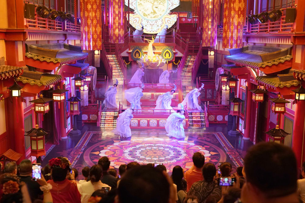 2024年5月19日,游客在西安長安十二時(shí)辰景區(qū)觀看表演《霓裳羽衣舞》?!伴L安十二時(shí)辰”主題街區(qū)將唐朝文化與現(xiàn)代旅游相結(jié)合,讓游客仿佛置身于千年前的長安城。近年來,西安積極推進(jìn)產(chǎn)業(yè)升級(jí)和文旅融合,以中華優(yōu)秀傳統(tǒng)文化創(chuàng)新創(chuàng)造活力助推經(jīng)濟(jì)社會(huì)高質(zhì)量發(fā)展,如大唐不夜城一樣火爆“出圈”的文旅項(xiàng)目層出不窮。