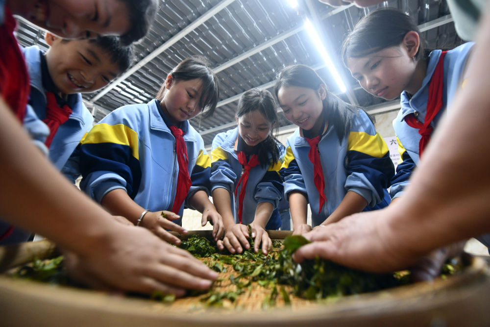 2024年12月3日,學(xué)生們?cè)趶V西梧州市蒼梧縣六堡鎮(zhèn)塘平小學(xué)學(xué)習(xí)制作六堡茶。廣西六堡茶已有1500多年的歷史,其制作工藝被列入第四批國家級(jí)非物質(zhì)文化遺產(chǎn)代表性項(xiàng)目名錄。近年來,廣西圍繞打造千億元茶產(chǎn)業(yè)發(fā)展目標(biāo),深入實(shí)施綠色高效茶園建設(shè)、品牌提升和營銷體系建設(shè)、產(chǎn)業(yè)融合和茶文化提升等多項(xiàng)工程,形成了以六堡茶為引擎,早春茶等特色優(yōu)勢(shì)茶協(xié)同發(fā)展的產(chǎn)業(yè)格局,茶產(chǎn)業(yè)煥發(fā)勃勃生機(jī)。六堡茶正沿21世紀(jì)海上絲綢之路運(yùn)達(dá)八方,香飄海內(nèi)外。2024年,廣西六堡茶產(chǎn)量達(dá)到4.3萬噸,綜合產(chǎn)值超300億元。