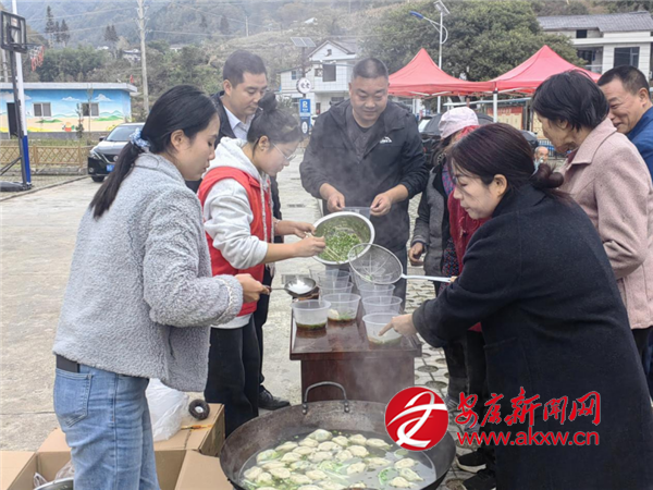 在廣場邊的臨時(shí)爐灶上,村“四支隊(duì)伍”人員分工協(xié)作,一起為老人們包著餃子。當(dāng)熱氣騰騰的餃子端上桌,老人們的臉上洋溢著幸福笑容。餐后的政策宣講環(huán)節(jié)干貨滿滿,村工作人員用通俗語言講解城鄉(xiāng)合作醫(yī)療收繳標(biāo)準(zhǔn)與報(bào)銷流程,結(jié)合老年群體常見病種舉例說明,現(xiàn)場為3位老人完成繳費(fèi)登記。