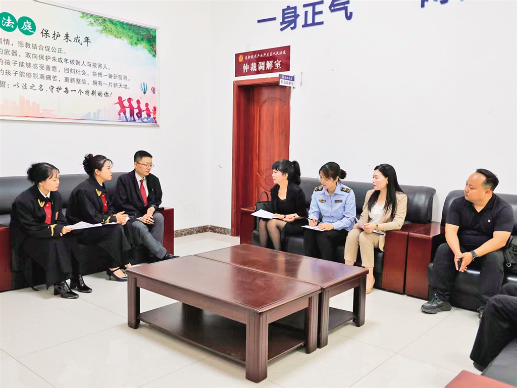 高新法庭特邀人大代表、政協(xié)委員、市場監(jiān)管工作人員及科創(chuàng)園企業(yè)代表走進(jìn)法庭,聯(lián)合開展調(diào)解工作。趙永佳 攝