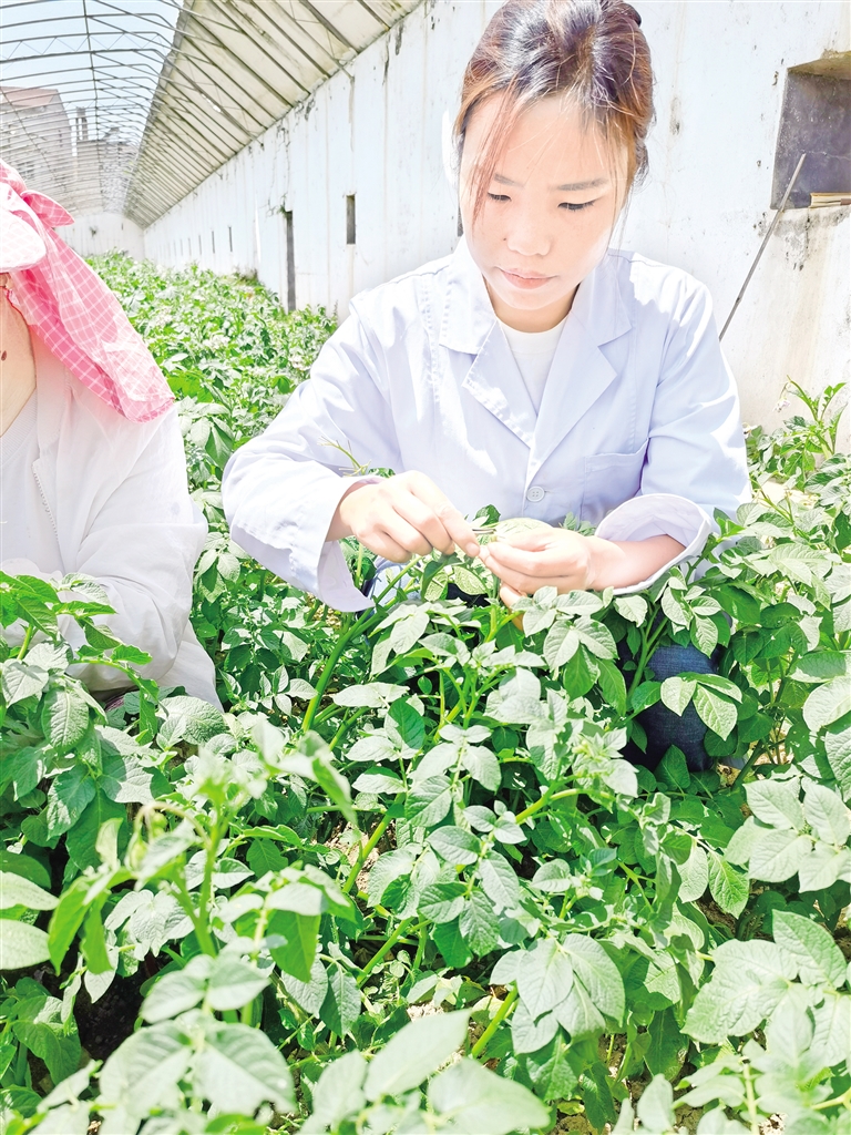 但更大的技術突破發(fā)生在實驗室和試驗田。在市農(nóng)業(yè)科學研究院的組培室內(nèi),科研人員正通過莖尖脫毒技術,讓馬鈴薯實現(xiàn)“逆齡生長”。鄭敏告訴記者,團隊目前引進優(yōu)質(zhì)種質(zhì)資源20余個,雜交創(chuàng)制優(yōu)質(zhì)無性系材料百余份,篩選出中早熟優(yōu)系3個、中晚熟優(yōu)系8個并通過國家或省級區(qū)域試驗,形成了“研發(fā)一代、儲備一代、推廣一代”的良性循環(huán),構建了完整的馬鈴薯種業(yè)創(chuàng)新體系。