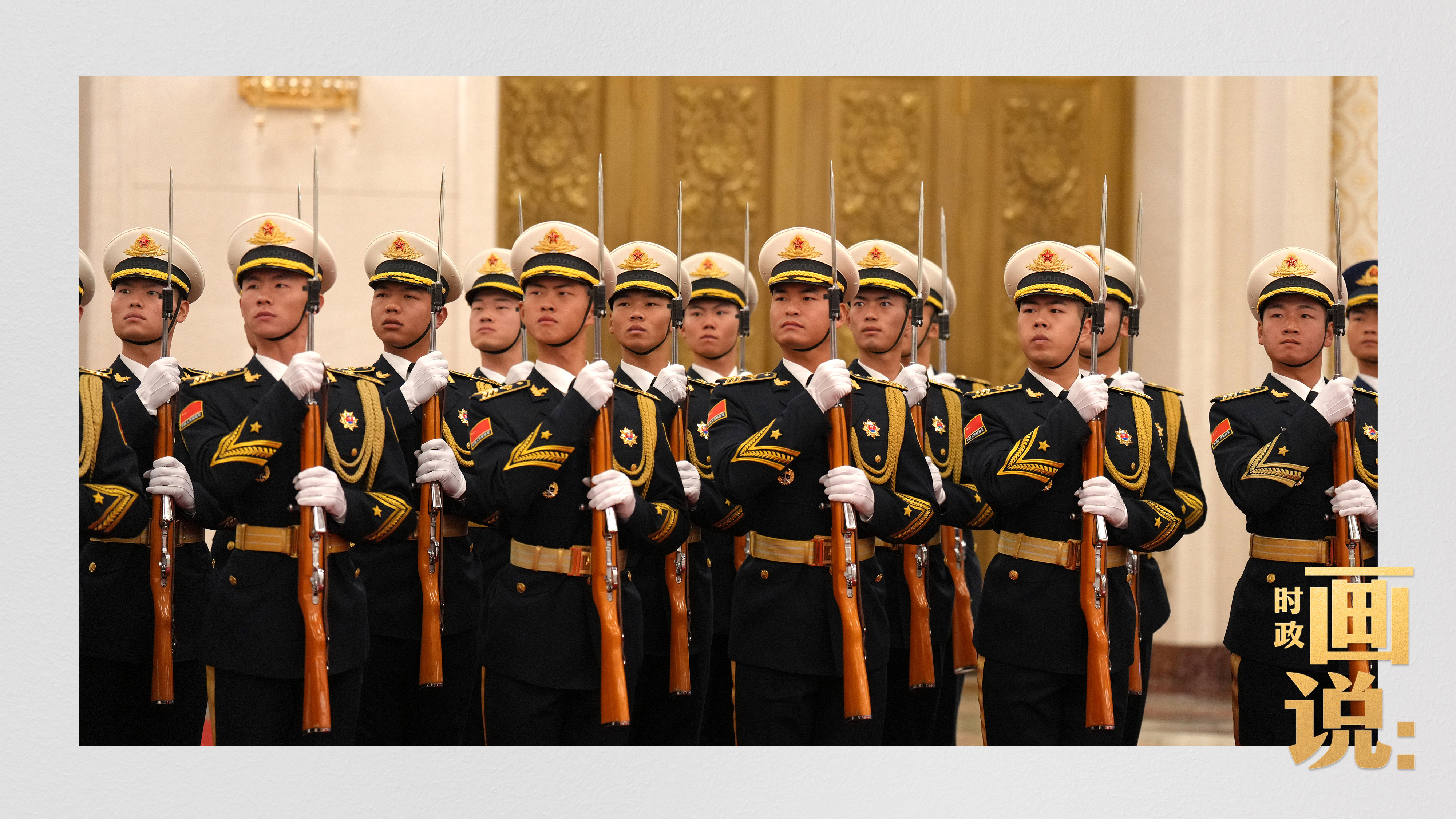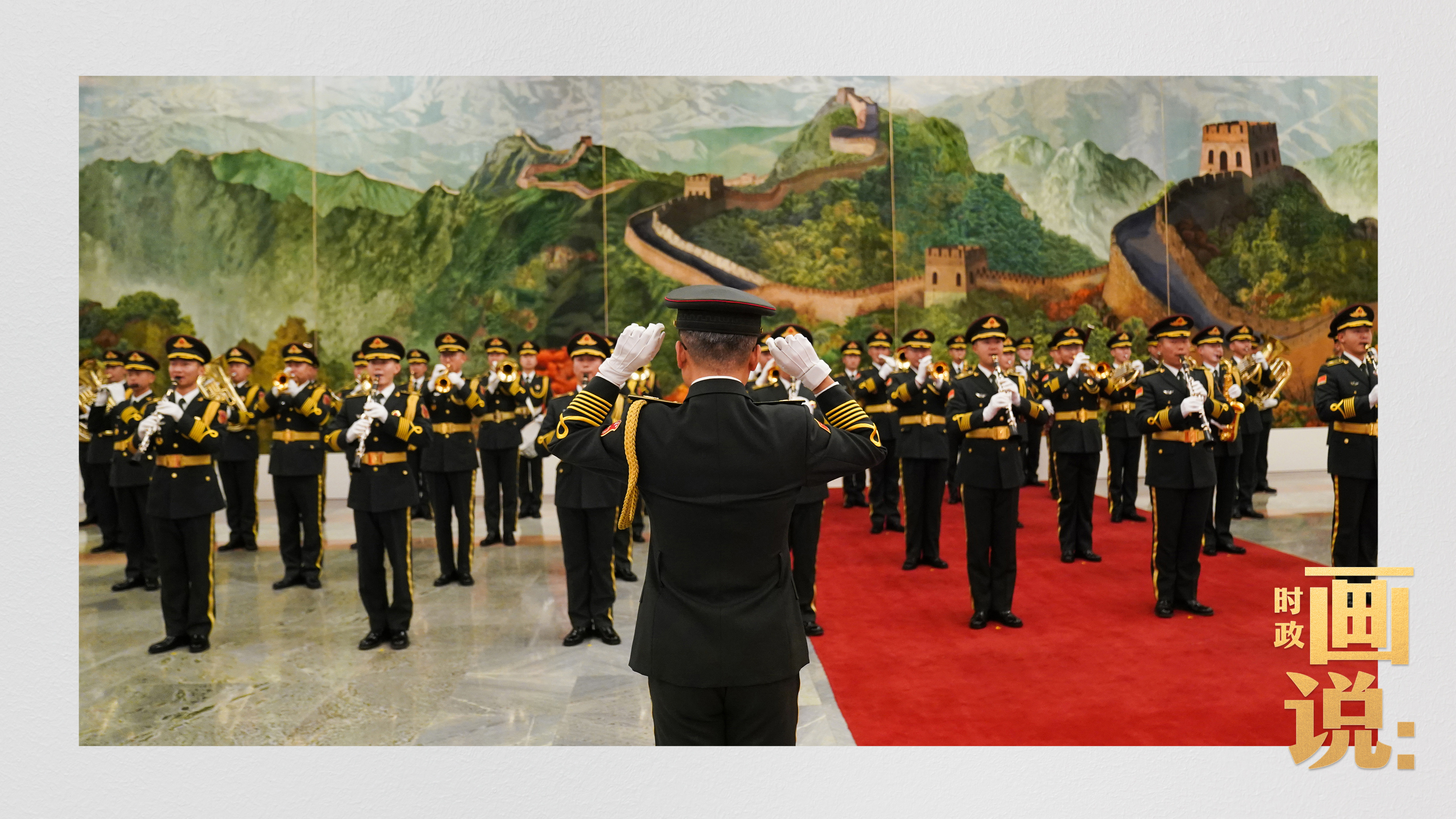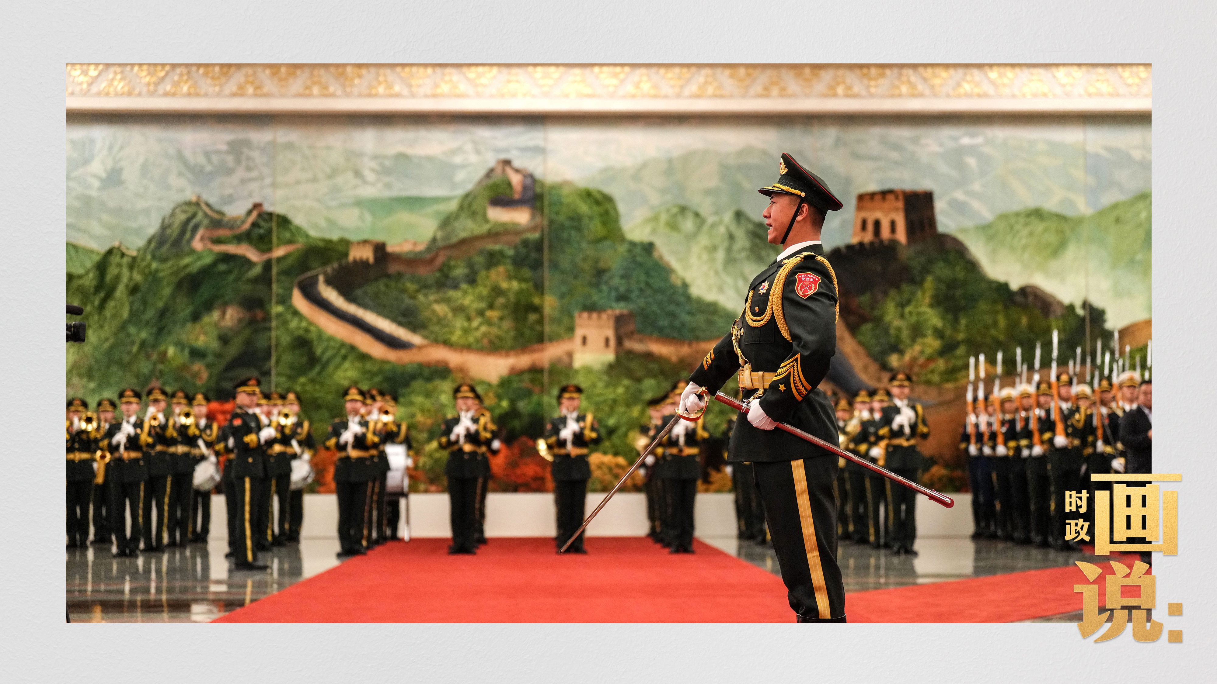 △馬克龍?jiān)诹?xí)近平陪同下檢閱中國人民解放軍儀仗隊(duì)并觀看分列式