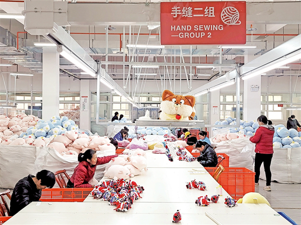 毛絨玩具生產車間里,女工們正在手工縫制