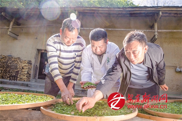 “十四五”期間,我市持續(xù)推進(jìn)茶產(chǎn)業(yè)發(fā)展,努力實現(xiàn)茶產(chǎn)業(yè)“四時有收”。圖為紫陽白茶非遺制作技藝代表性傳承人在高橋鎮(zhèn)裴壩村,向茶農(nóng)推廣紫陽白茶非遺制作技藝。 李勝璋 攝?